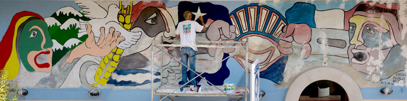 Nel 1971 in un quartiere popolare di Santiago dipinge, con il famoso artista Roberto Sebastian Matta , un’importante opera murale, coperta più volte negli anni dalla dittatura, oggi restaurata e resa Patrimonio Culturale del paese.